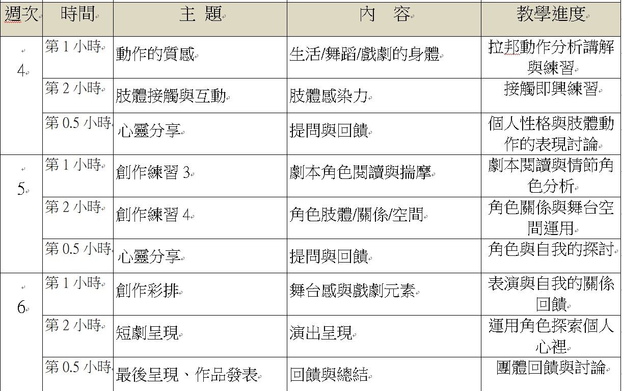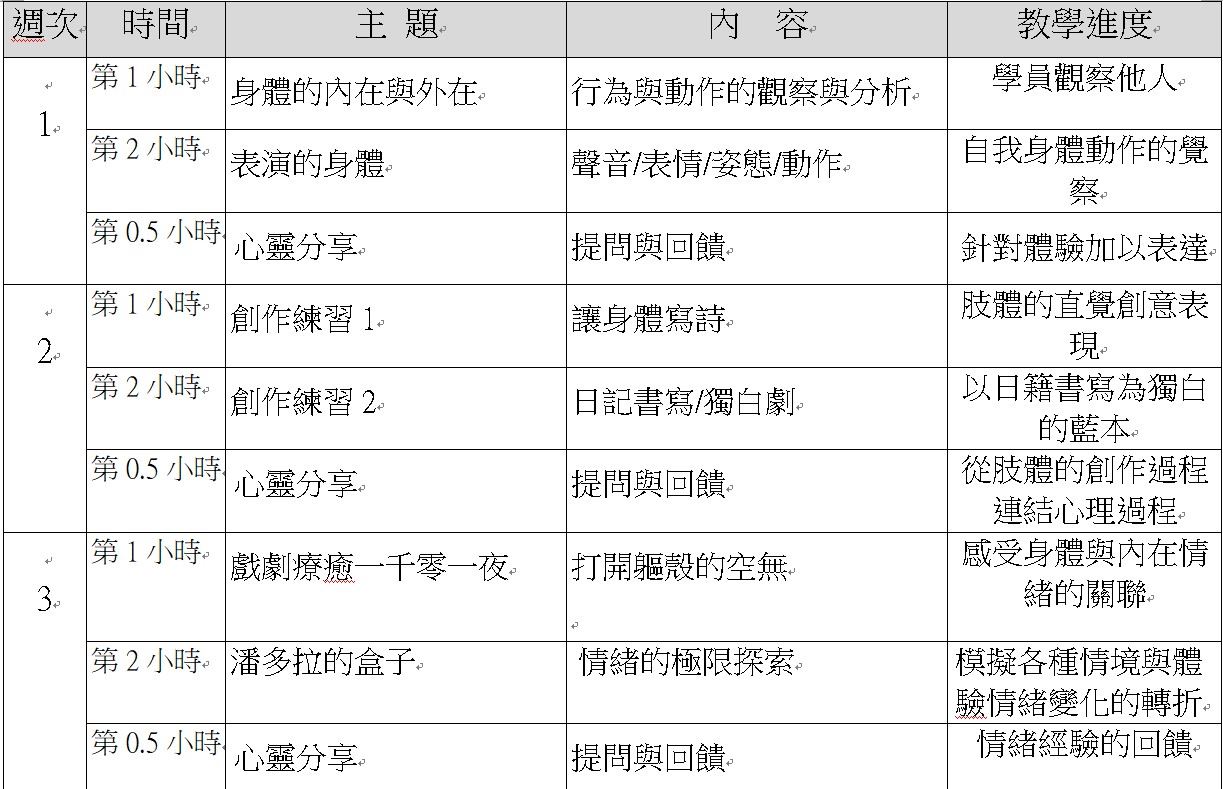 2.運用戲劇治療之理論增進個體身體與意識之自覺。