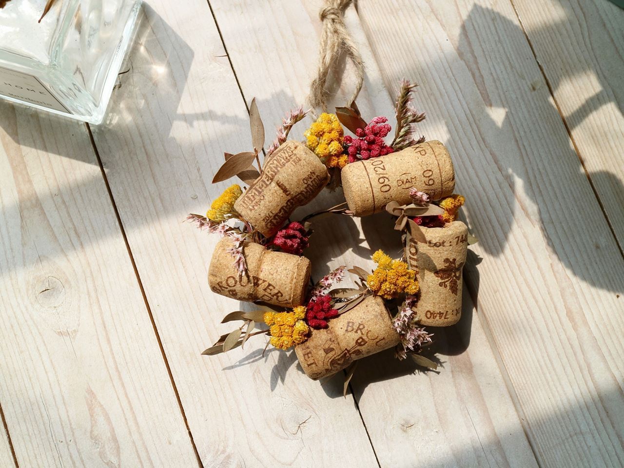 另外花藝師也會協助指導如何把酒塞裝飾在花圈上,