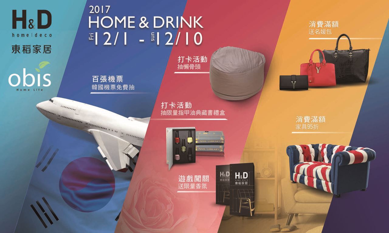 於原創基地節活動期間『 H&D東稻家居 Home&Drink展區 』內參觀就有機會將韓國機票免費帶回家,現場還有眾多好禮來相送。