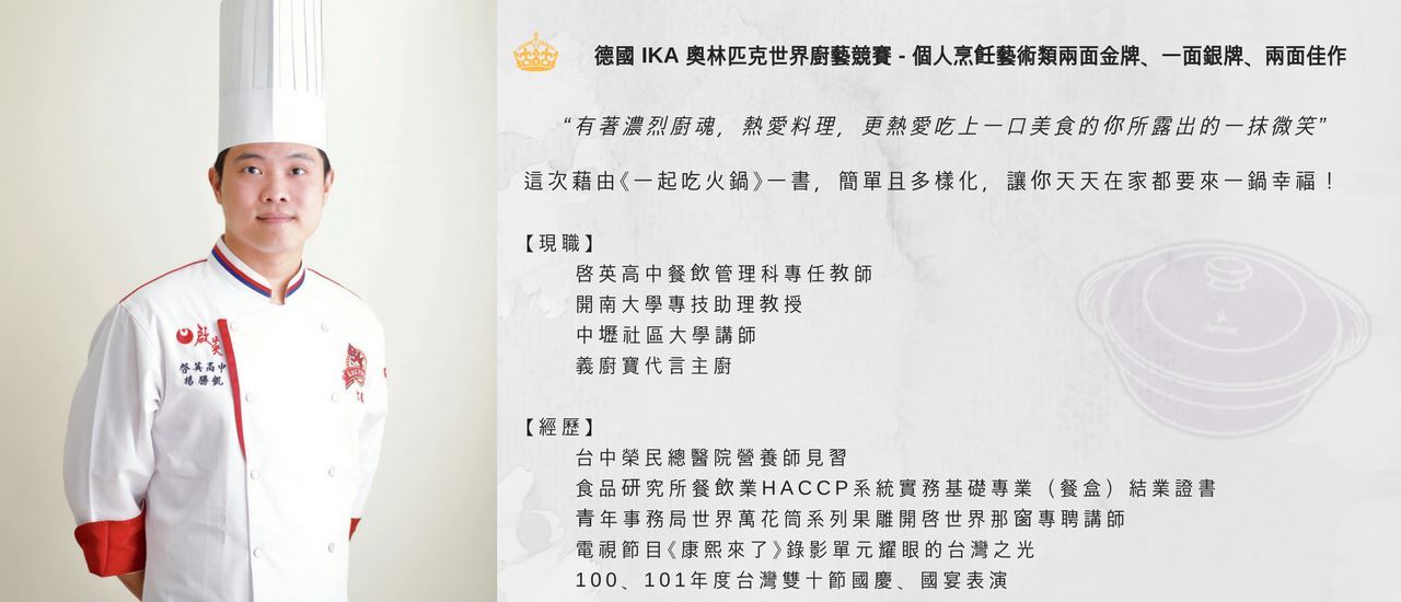 本活動為秋冬最新食譜書《一起吃火鍋》的新書發表會,並由本書作者「知名主廚-楊勝凱」在現場教您怎麼作麻辣鍋、壽喜燒、海苔厚蛋燒,讓您冬天享有熱呼呼的幸福!