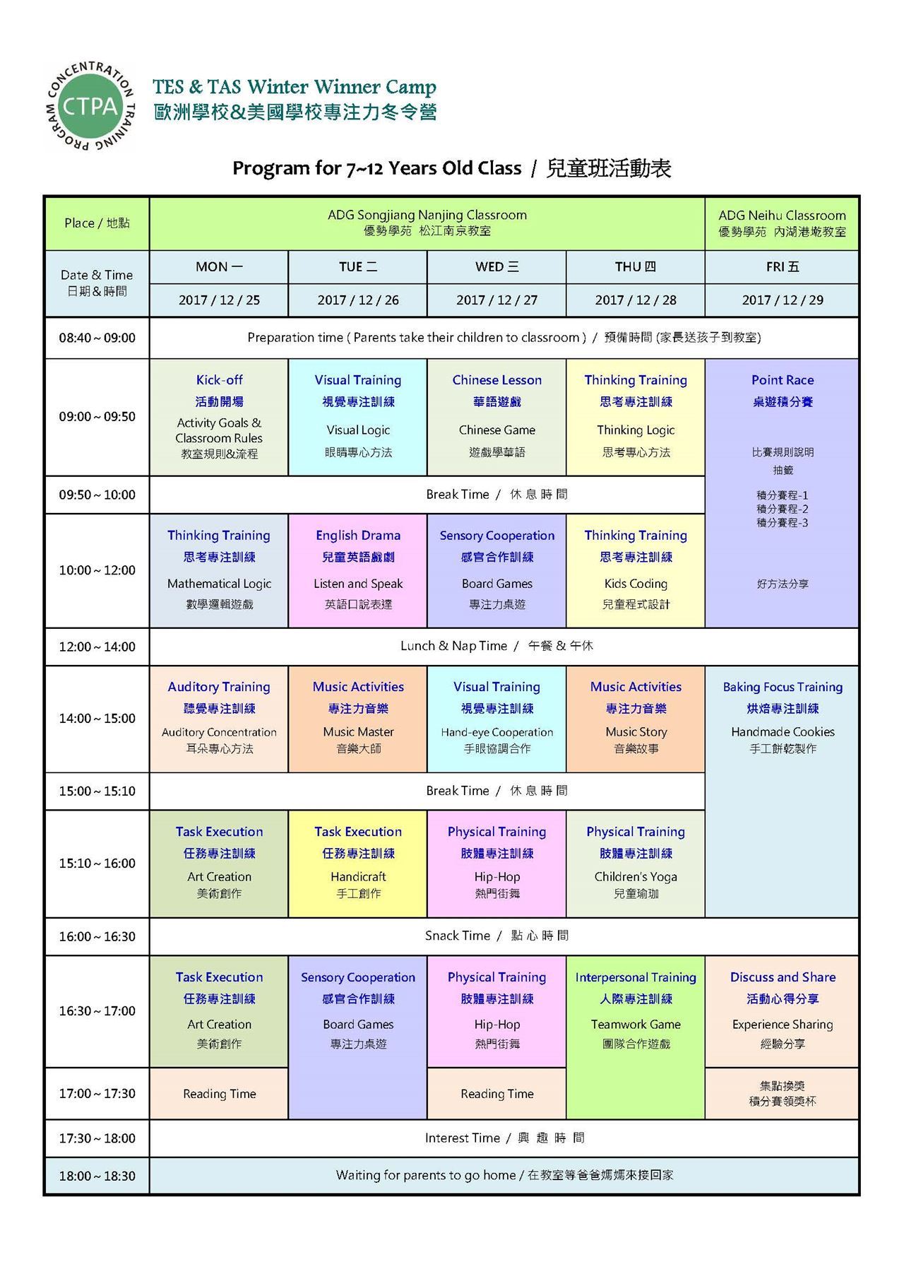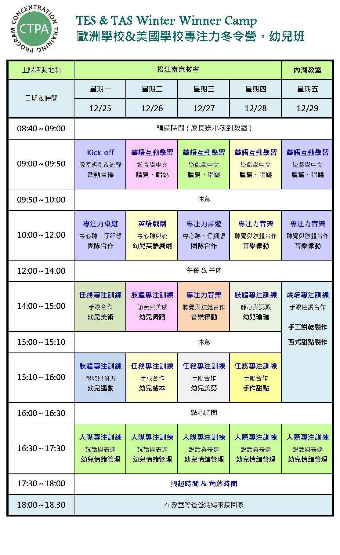 2017.12.25(一)~2017.12.29(五)。幼兒班。兒童班