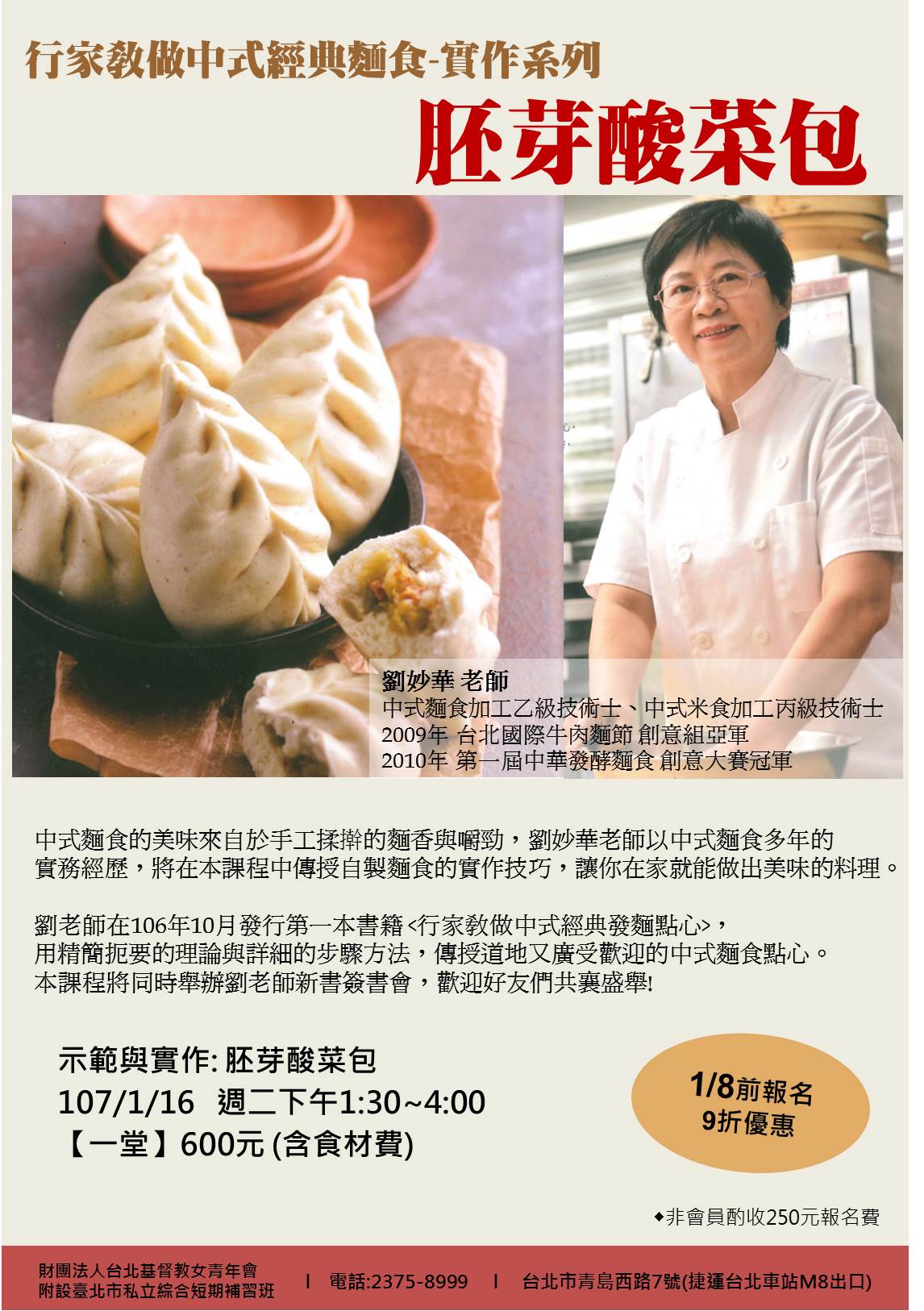 【女青年會】行家教做中式經典麵食-胚芽酸菜包實作