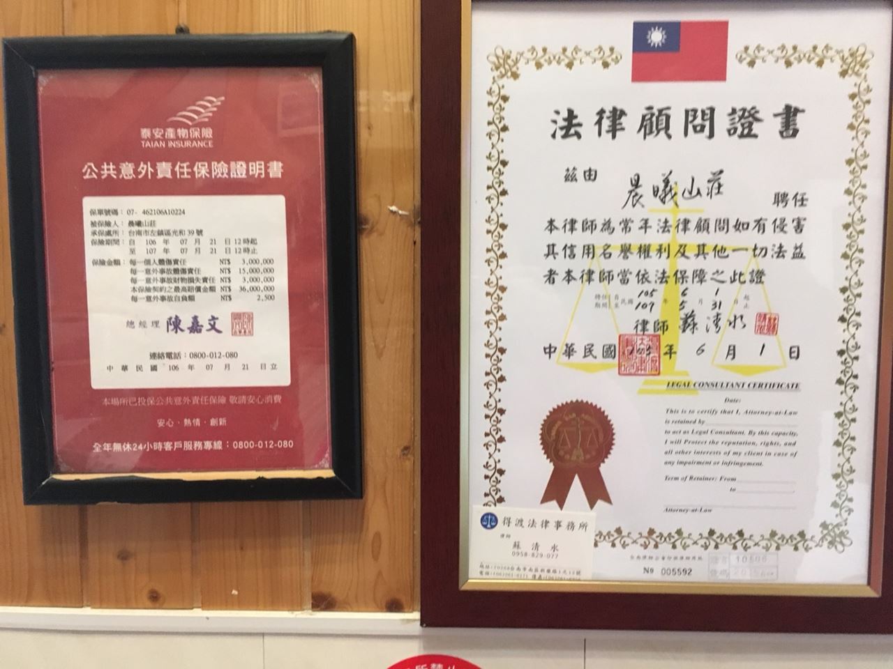 合法申請民宿並保有公共意外責任險