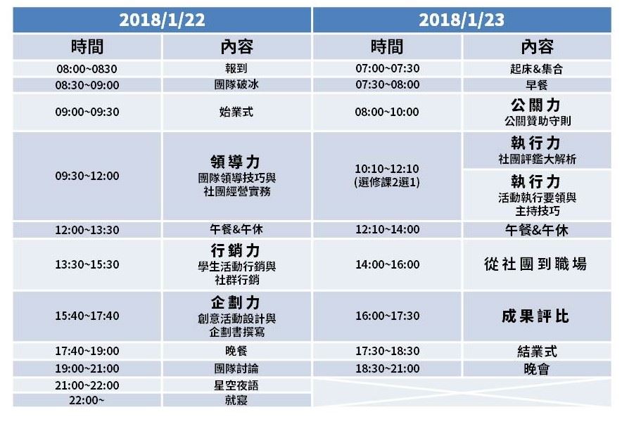 一場針對大學生社團所需的5大核心能力(領導力、行銷力、企劃力、公關力與執行力)進行培訓並強調與職涯連結,培養自身能力,提升軟實力。