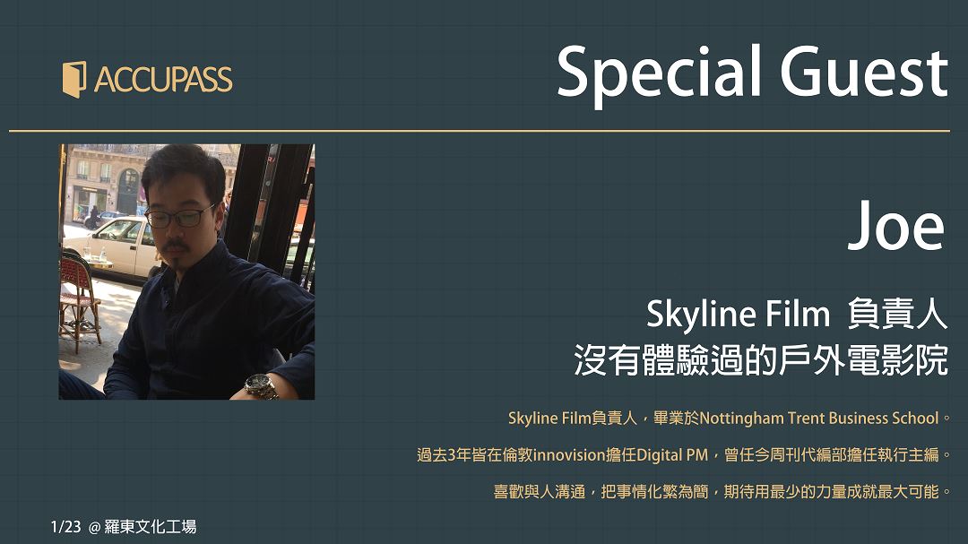 Skyline Film負責人,畢業於Nottingham Trent Business School。