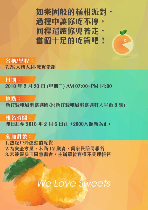 快跟上吃貨的步伐,上依貝特報名「2018大桔大利-吃貨走跑」吧!!!