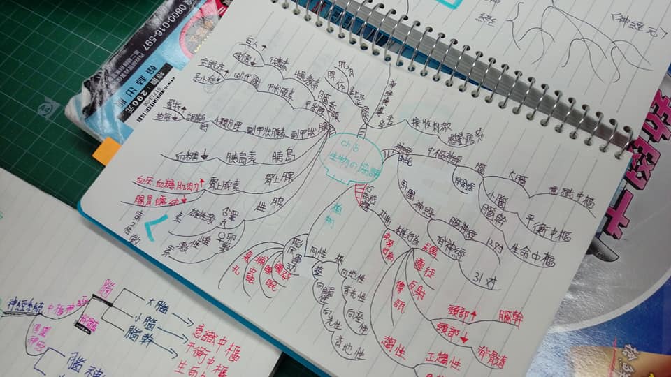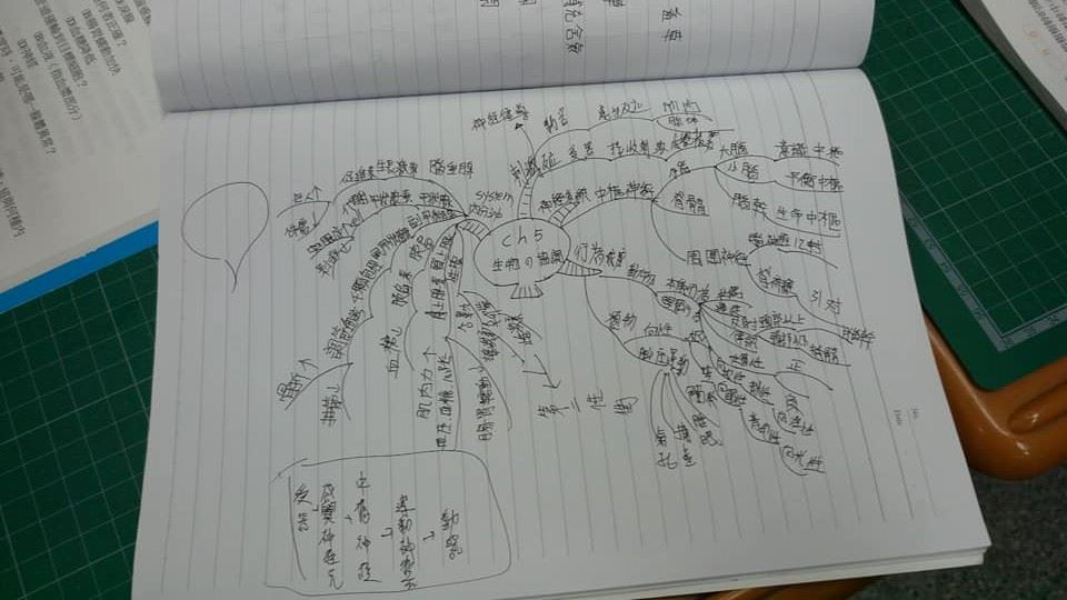 明騰老師在課堂上用運心智圖法來引導學生學習,明騰老師說,當其他班級的學生考試時要複習厚厚一本書時,他們班的學生複習時以六張心智圖來梳理自己的學習,發現不了解或忘記之處立馬對症下藥,針對該小節進行加強,可以有效縮短時間並提升學習效率!