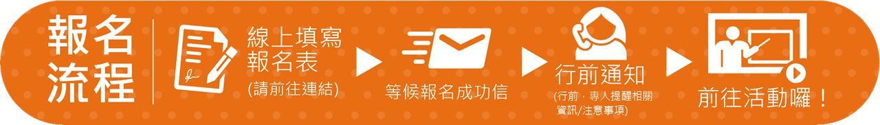 1.報名成功若臨時不能參加,需於活動開始前1個工作日來電或來信告知。