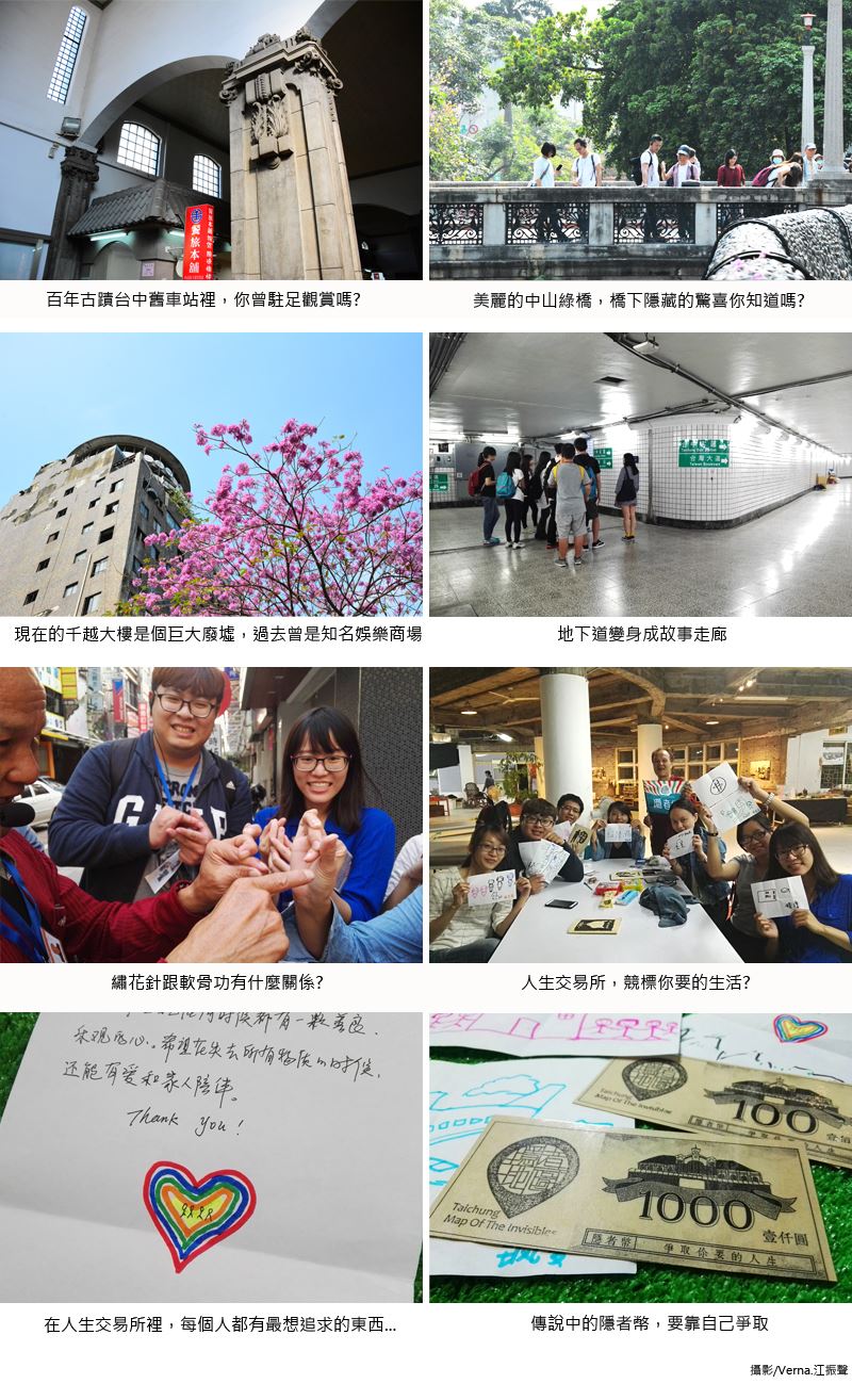 街友導覽在台中實現了! 隱者地圖是台中在地最有溫度的小旅行,帶你遊玩的是一群城市隱者,由街友、獨居老人、中高齡失業者所組成,他們用社會底層的聲音,訴說他們自己愛與生命的故事。 民眾可以預約行程,票價的6成作為隱者收入。