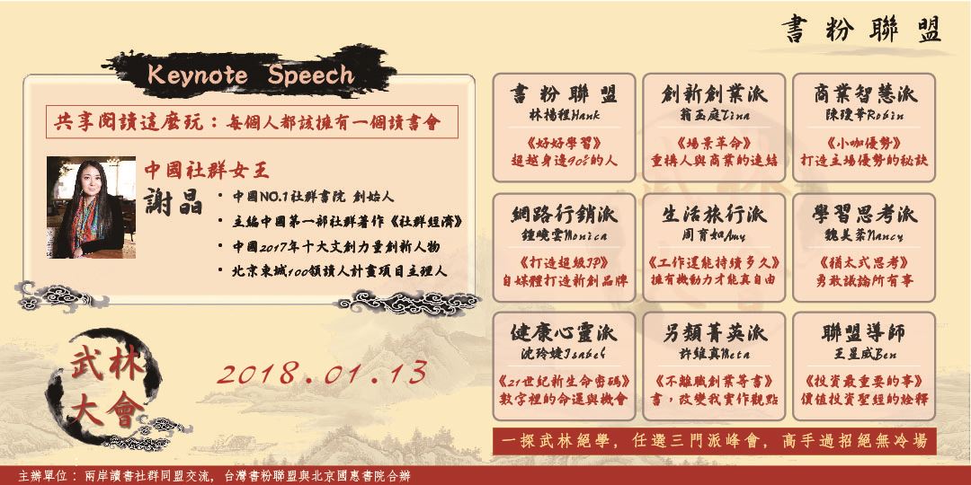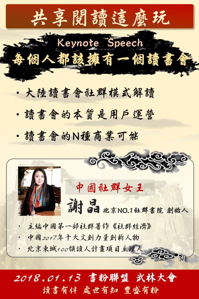 他是主編中國第一本社群著作《社群經濟》,同時也是大陸第一個讀書會社群的創始人以及北京最大的O2O社群書院,每年線下活動超過17000場次。
