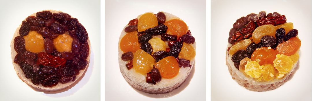 八寶代表糯米、糖豆兩種、糖蓮子、橘餅、葡萄乾、蜜紅豆、紅棗等,