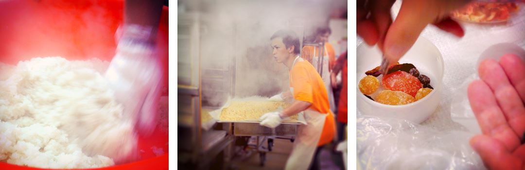 一起排出漂亮的圖樣,加上與老師傅聯手蒸熟的糯米飯,