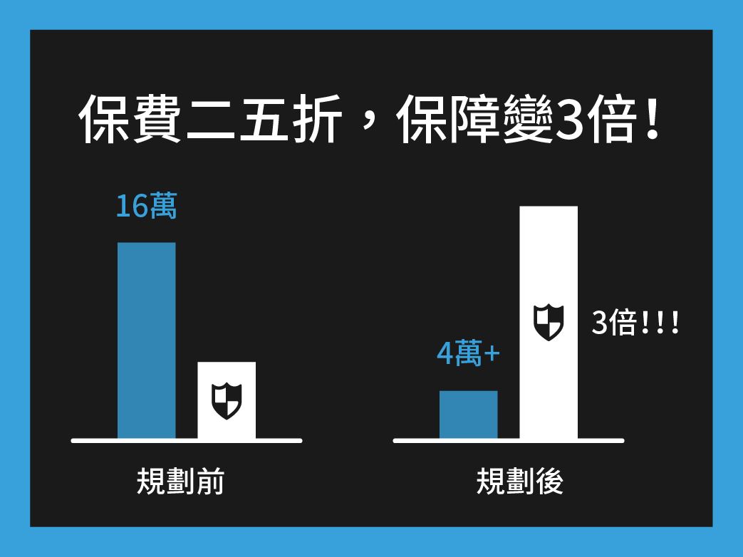 經過調整,好厝顧問協助會員將每年近16萬元的保費,節省至4萬出頭,而且保障額度拉高3倍。