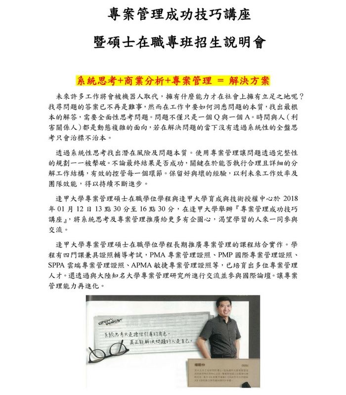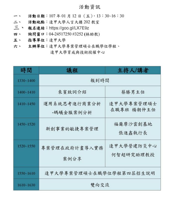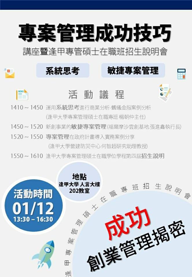 新創敏捷專案管理和商業分析講座暨逢甲專管碩士在職班招生台北直播場