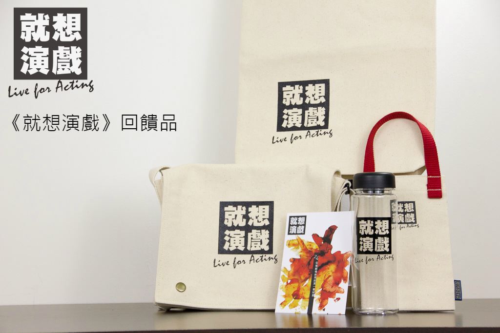 限量的《就想演戲》回饋品優正在flyingV《就想演戲》新媒體獨立出版計畫頁面https://www.flyingv.cc/projects/17771熱賣中,包括與台南廣富號合作的限量帆布手提袋(價值600元)、限量斜背包(價值800元)、限量水壺袋組(價值500元)、小卡一組(價值100元),以及實體書搶先預購(價值380元)等各項商品的超值組合。歡迎至https://www.flyingv.cc/projects/17771回饋專案選購,也歡迎至flyingV專頁隨時關注我們的最新進度喔!