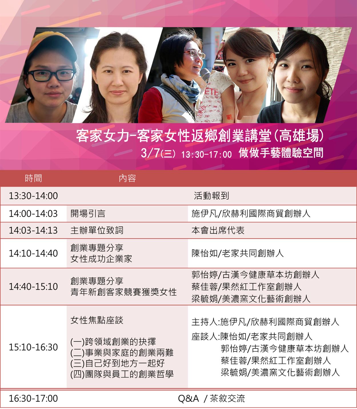 客家女性返鄉創業講堂:五位女性創業家分享創業之路(免費活動)