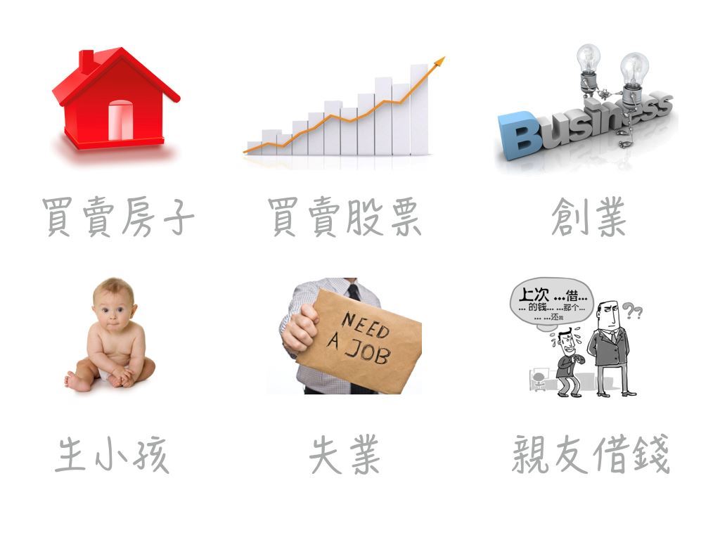 像:買房子、股票、買車、生小孩、失業等等...