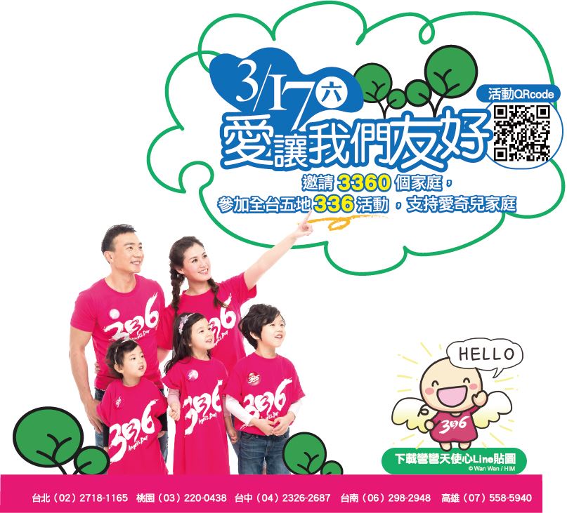 同時,天使心家族與知名插畫家彎彎首次合作 336愛奇兒日友好Line貼圖,讓社會大眾認識、理解愛奇兒家庭,進而接納、友好。