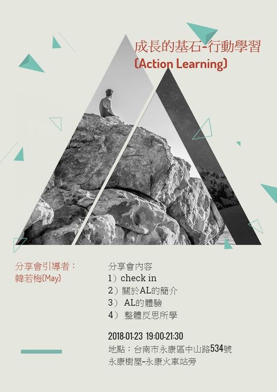 這場分享會我會說明何謂行動學習,當場示範一場,最後大家來反思,提問它和引導的關係