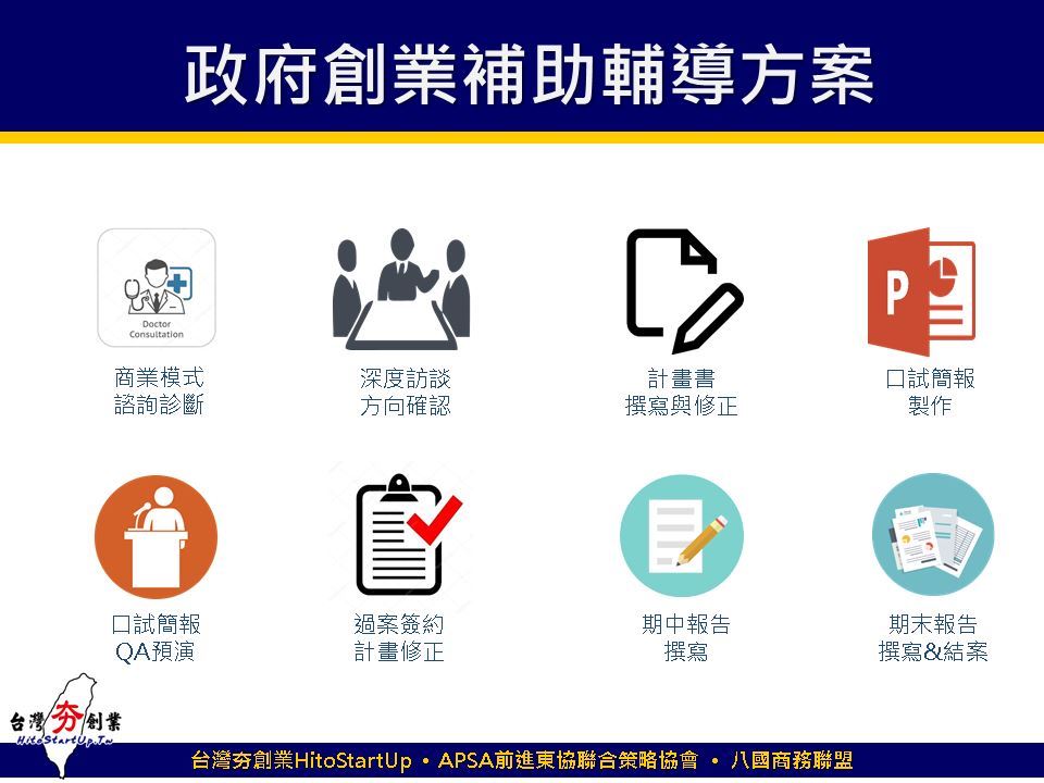 註2:承上,因政府補助申請全程輔導需考量團隊結構、商業模式成熟度等諸多因素,故本單位保有評估是否承接此特惠專案之權利。