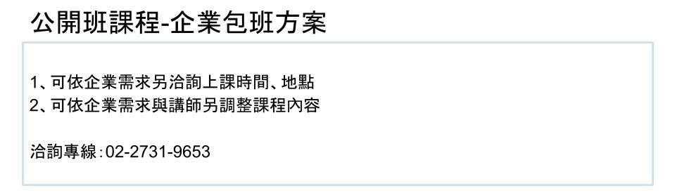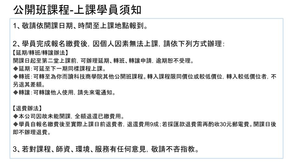 ‣ 報名完成後,將於人數達開班門檻時,以E-mail通知繳費。