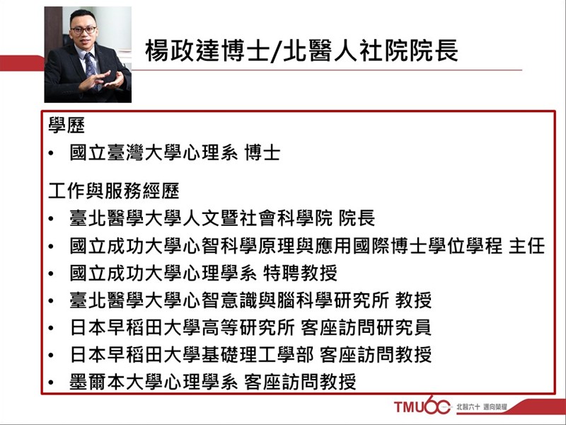 ✓ 特邀臺北醫學大學人文暨社會科學院 楊政達 院長 共同授課