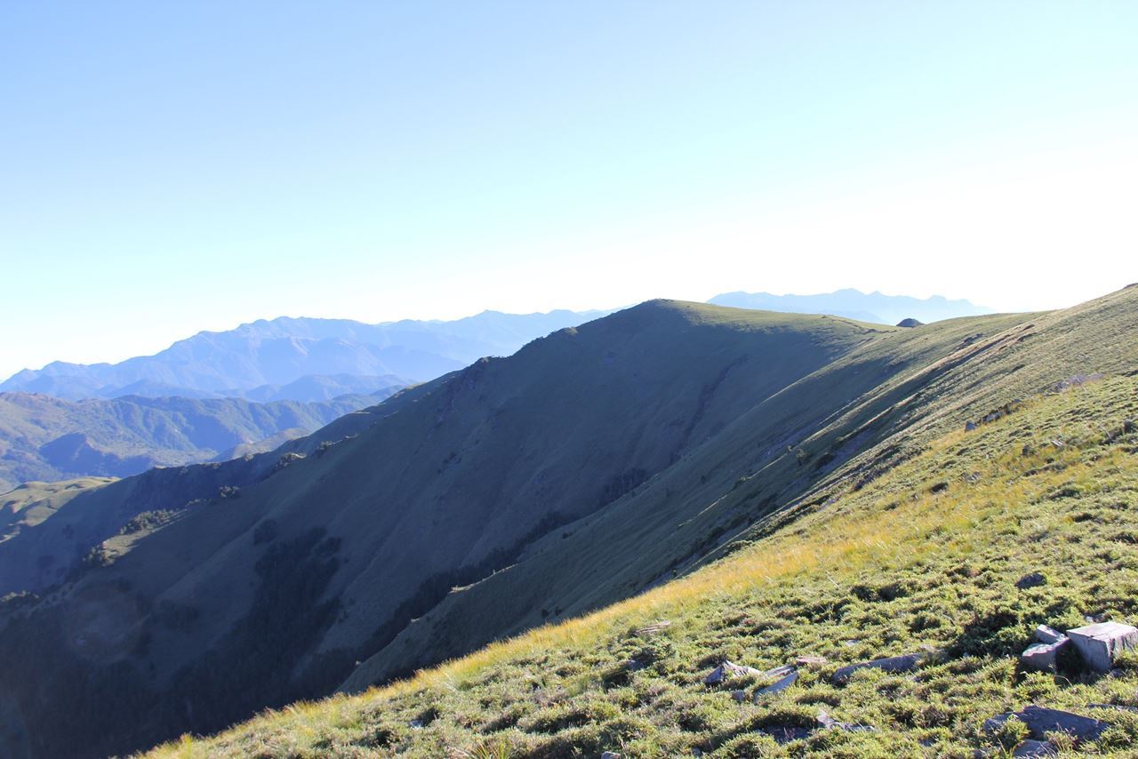三叉山標高3496公尺,一等三角點,山頂平坦遼闊,綠草如茵,一路上若遇到晴朗的天氣,玉山南二段、南一段、新康、布拉克桑等皆清晰可見。