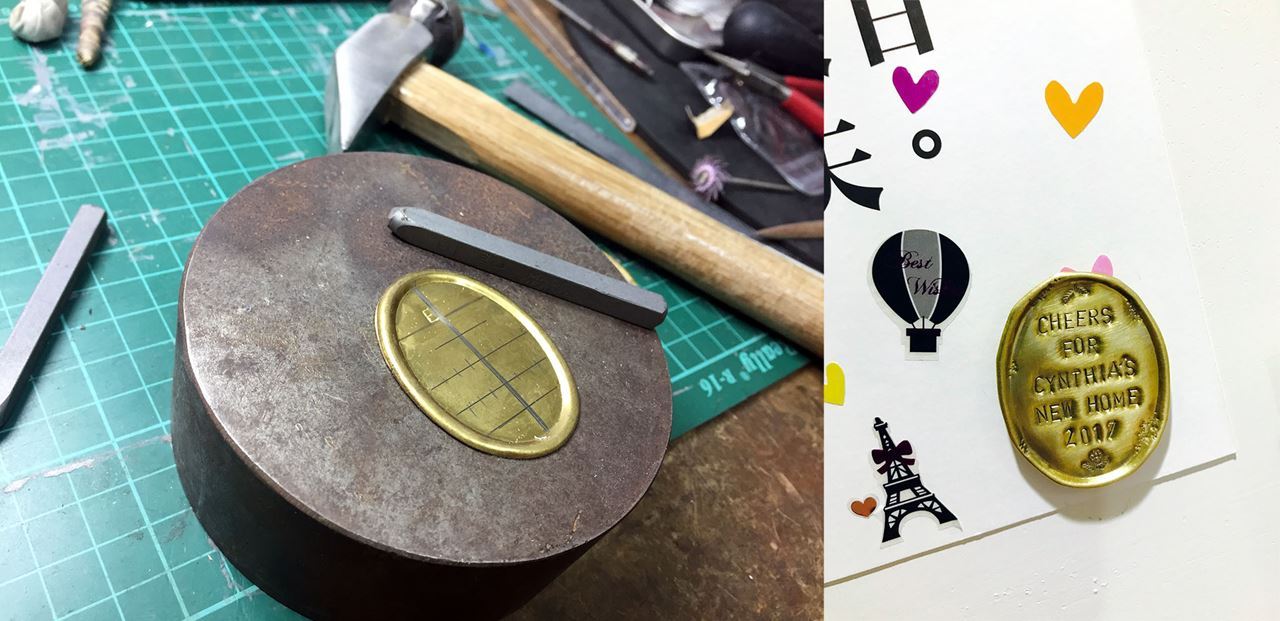 2. 藉由專業金工指導,以金工技法於金屬片材上進行銘刻書寫