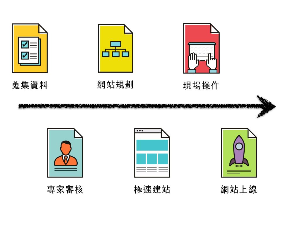 - 極速建站:規劃好網站後就馬上開始架設,打鐵趁熱一口氣完成你的網站吧!