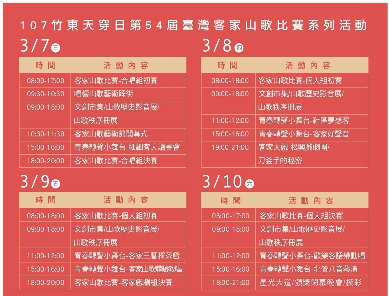 邀您體驗歷史最悠久、全台最盛大的客家山歌比賽,以及藝術踩街、文創市集、音樂展演、傳統山歌影音展,還有多項好禮!
