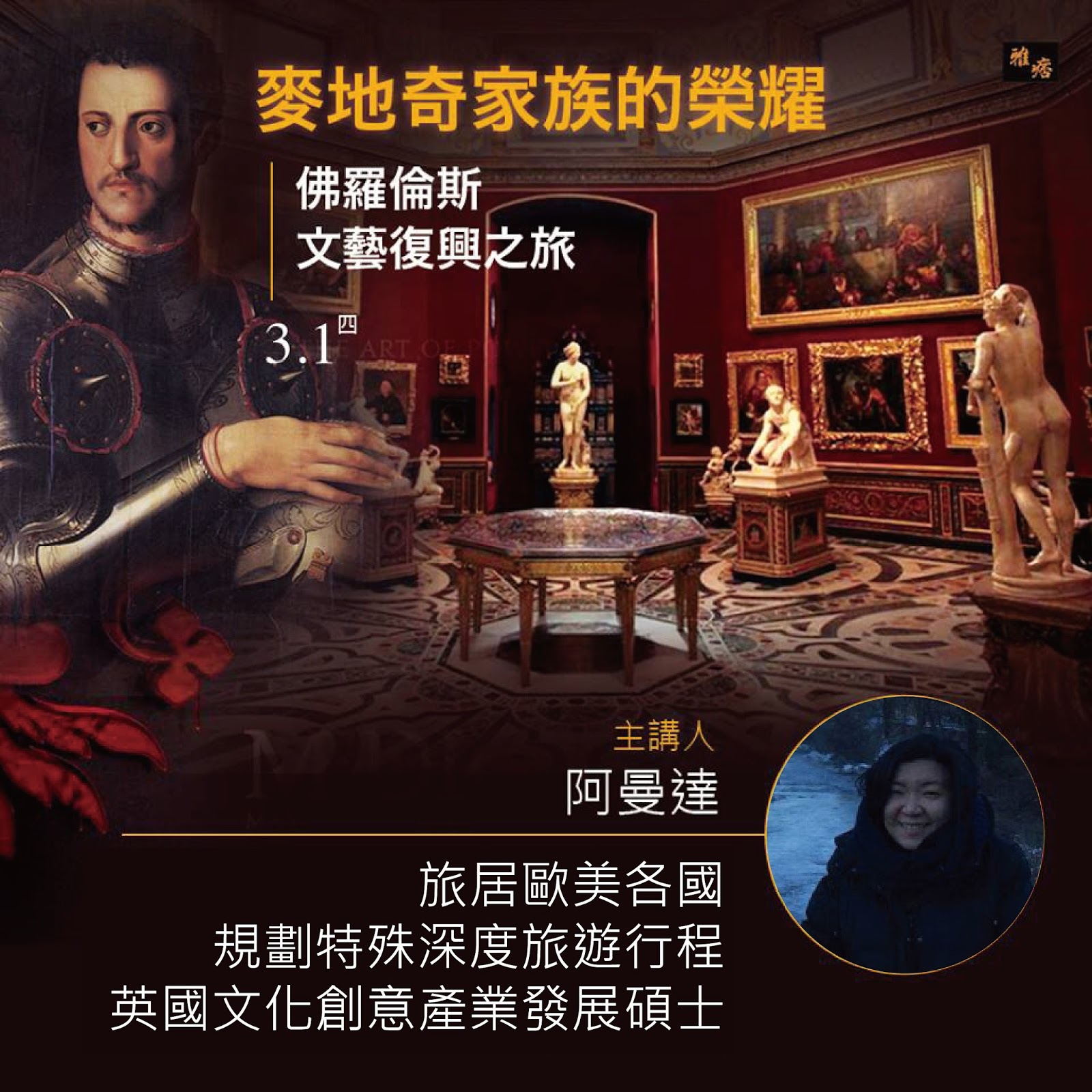 談論文藝復興,佛羅倫斯的麥迪奇家族,當然功不可沒。身為權頃三代的紅頂商人,麥迪奇家族還出了二個教宗,二個法國王后,尤其是《凱薩琳·德·麥迪奇Caterina Maria Romola di Lorenzo de' Medici》,更是一個影響了後代歐洲的傳奇人物。