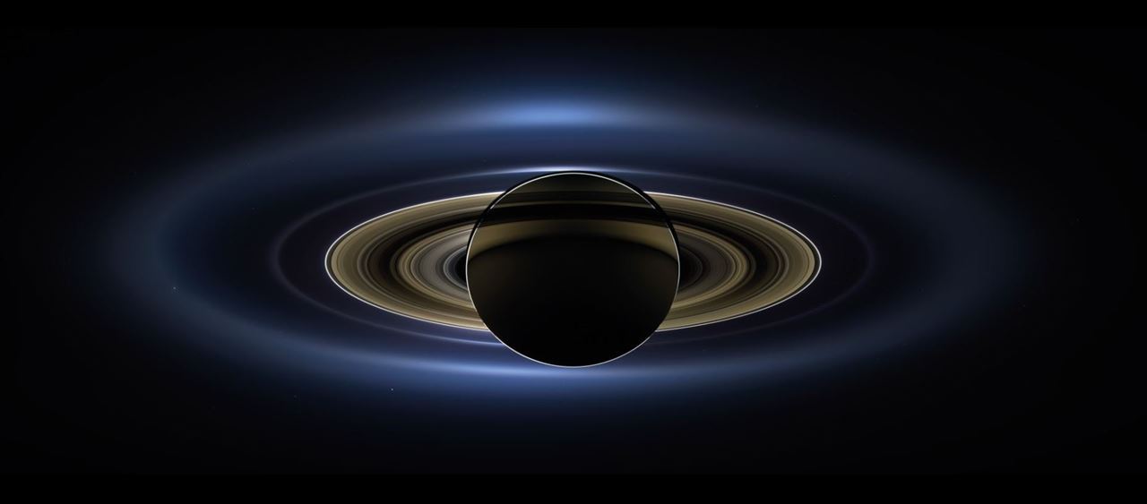 ↑土星遮蔽了太陽刺眼的光芒,卡西尼號的相機捕捉到土星與土星環的影像。這項任務獲得了開創性的數據,也是三個太空機構—美國航太總署、歐洲太空總署以及義大利太空總署—密切合作的成果。