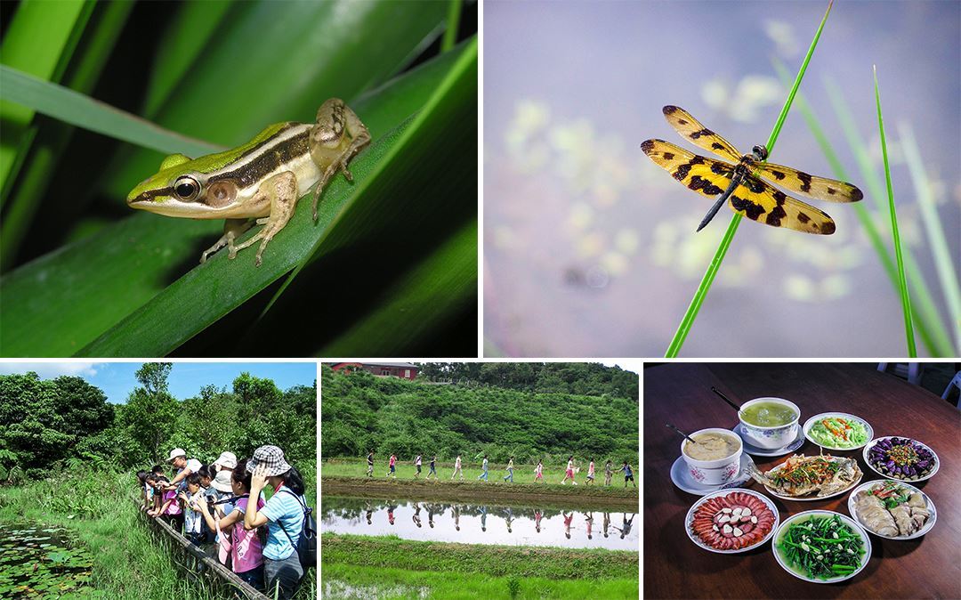 阿里磅生態農場在鮮少人為干擾、經年累月的自然演替下,孕育出高歧異度的生態相,這兒錯落交接的溼地生態系、溪流生態系、開曠草原生態系、池塘(湖泊)生態系、森林生態系、孕育了多樣活潑的動植物,最適合從事自然生態之旅。在歷年來的生物相調查中,共紀錄了一百餘種蝴蝶,七十餘種鳥類、十九種蛙類以及六十餘種蜻蜓。這樣一個豐富的自然教室,是孩子們探索自然、享受自然和向大自然學習的最佳殿堂。天氣好的日子,循著當地小孩的笑語聲,你就能找到這片優美溪谷。入口處,迎接你的是一條林蔭小徑,隨著山坡蜿蜒而下,沿途清風徐徐,飄逸著鳥叫蟲鳴與陣陣花香。步行約三百公尺,景色漸漸開朗,山林之間,一彎綠波粼粼的湖泊,就和你的眼眸一起亮了起來!