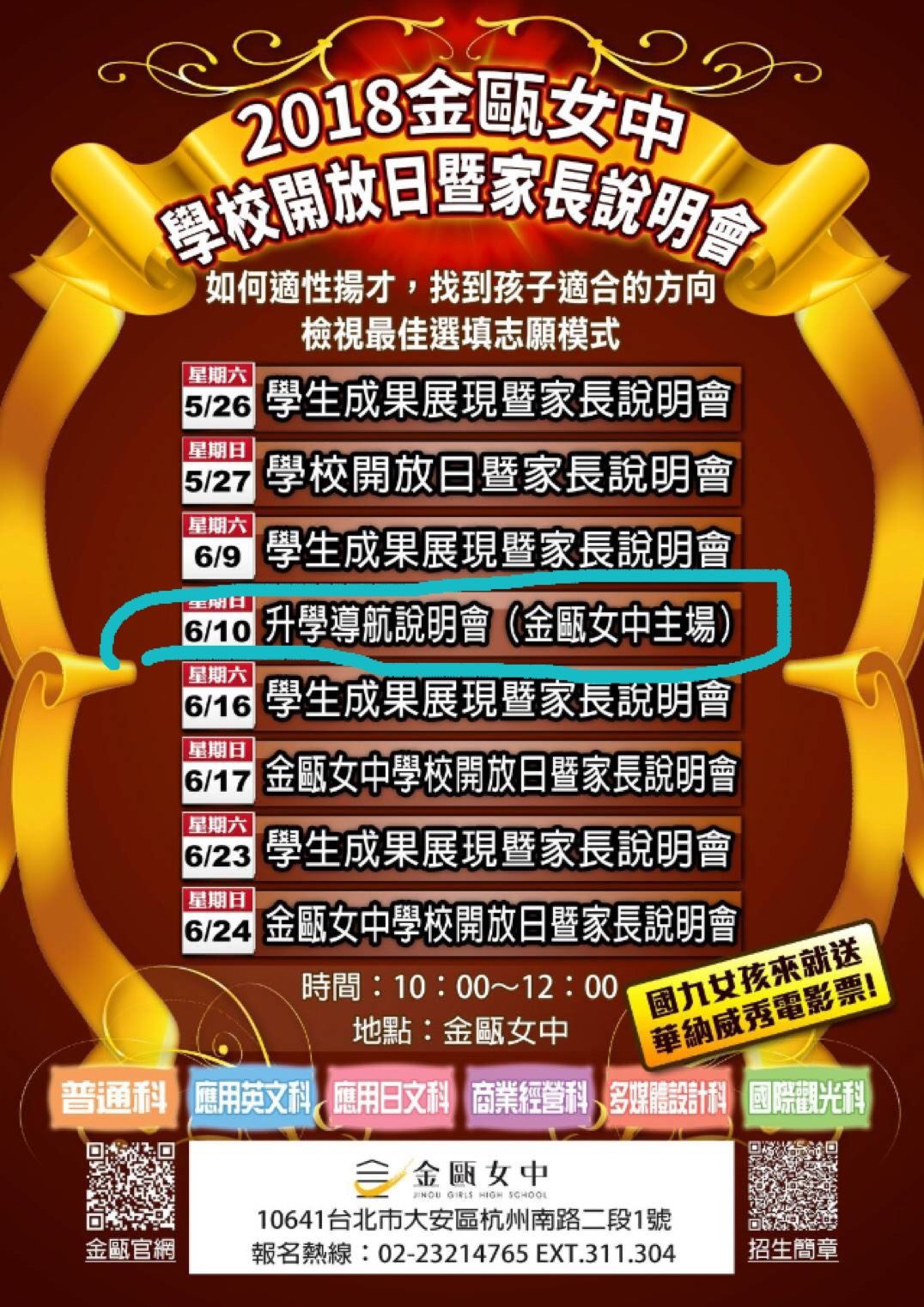 - 活動時間:2018/06/10(日) 10:00~12:00 (金甌女中第二場)