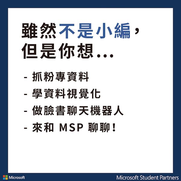 粉絲專頁:Microsoft Student Partners in Taiwan