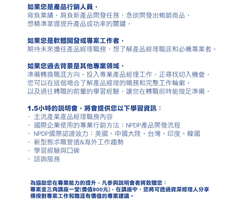 考取NPDP贈送「企劃競爭力講堂」或「電子商務&數位行銷」講堂全系列16堂課