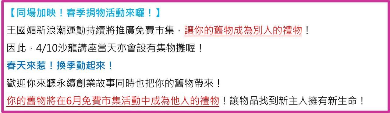 輔大_王國媚新浪潮沙龍講座:4/10零廢棄 用時尚改變世界!