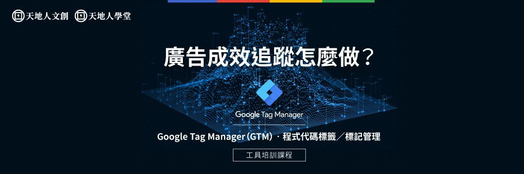 名稱:天地人學堂:廣告成效追蹤怎麼做? Google Tag Manager(GTM 程式代碼標籤/標記管理工具培訓課程