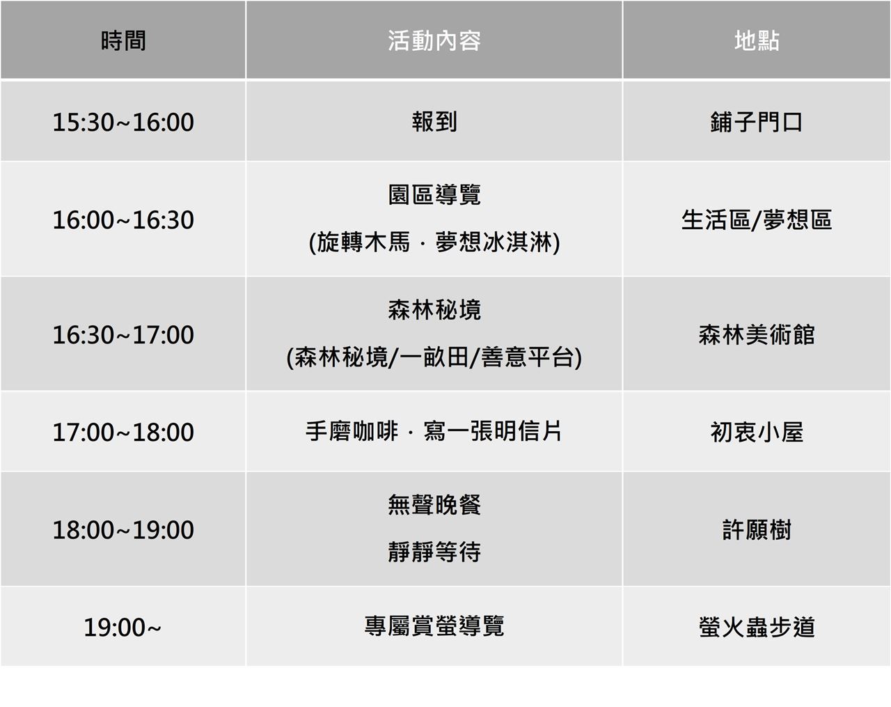 活動流程│ 由於螢火蟲每年出沒日期時間不一定,一切行程視當天天氣與狀況修正