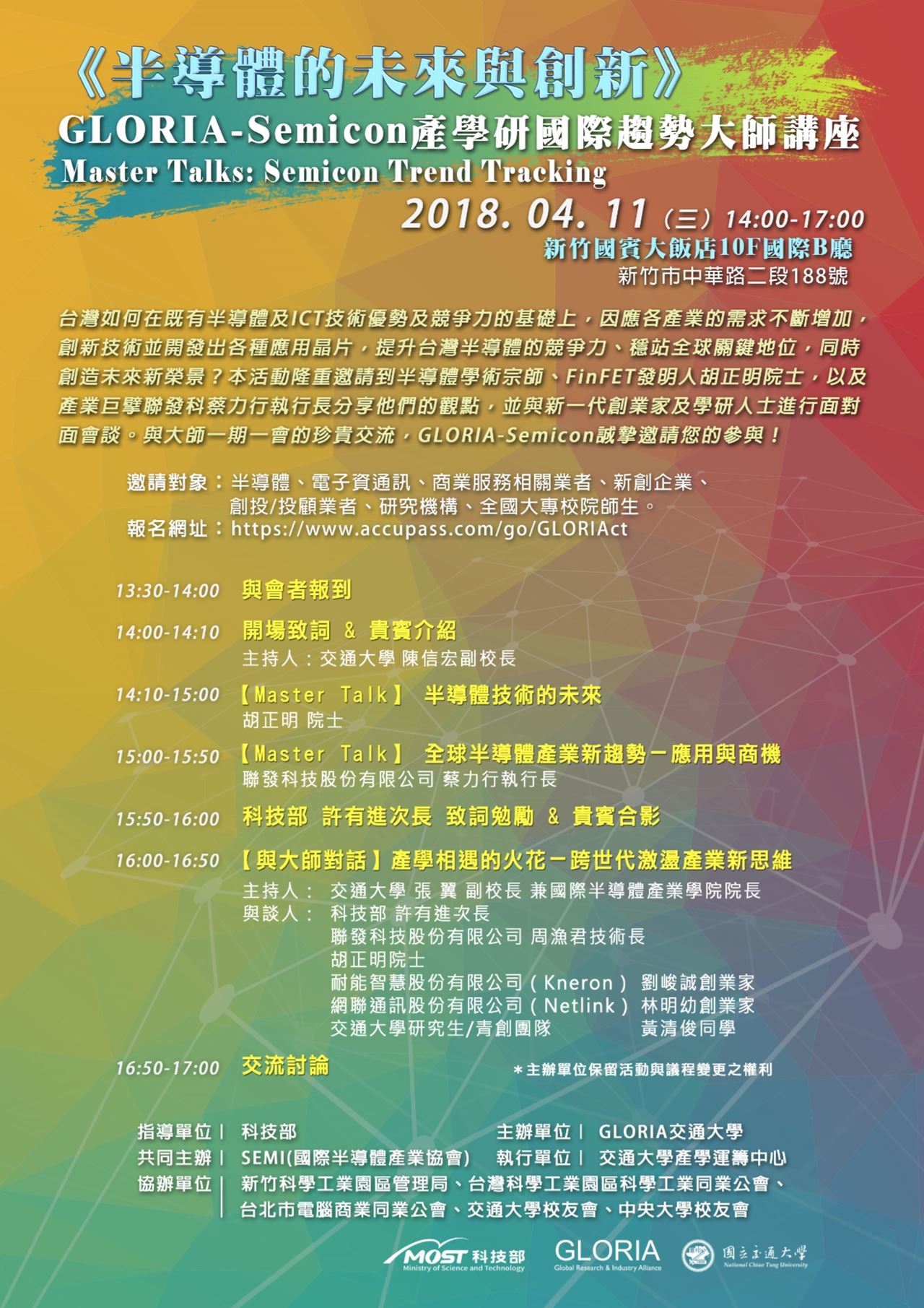 > 為使活動進行流暢,歡迎於報名時事先填寫您想請問講者群的問題,以便主辦單位彙整安排。