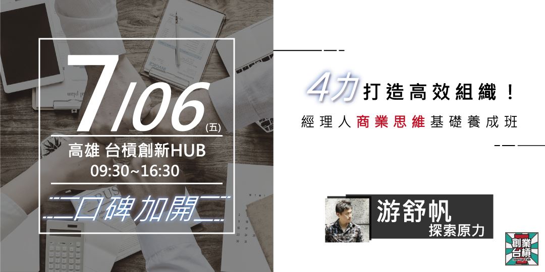 7/06(五)【台槓私塾】4力打造高效組織!經理人商業思維基礎養成班(口碑加開)