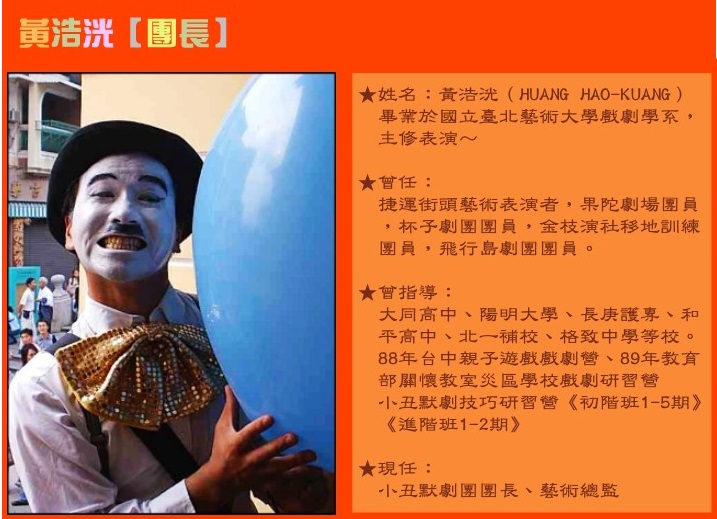 《金枝演社移地訓練團員》《小丑默劇團團長、藝術總監》