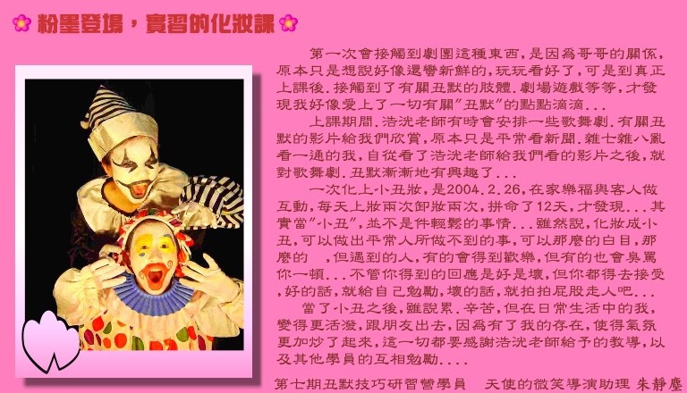 ◎上課地點:小丑默劇團排練場【北縣中和市中興街20號1樓,近捷運景安站】