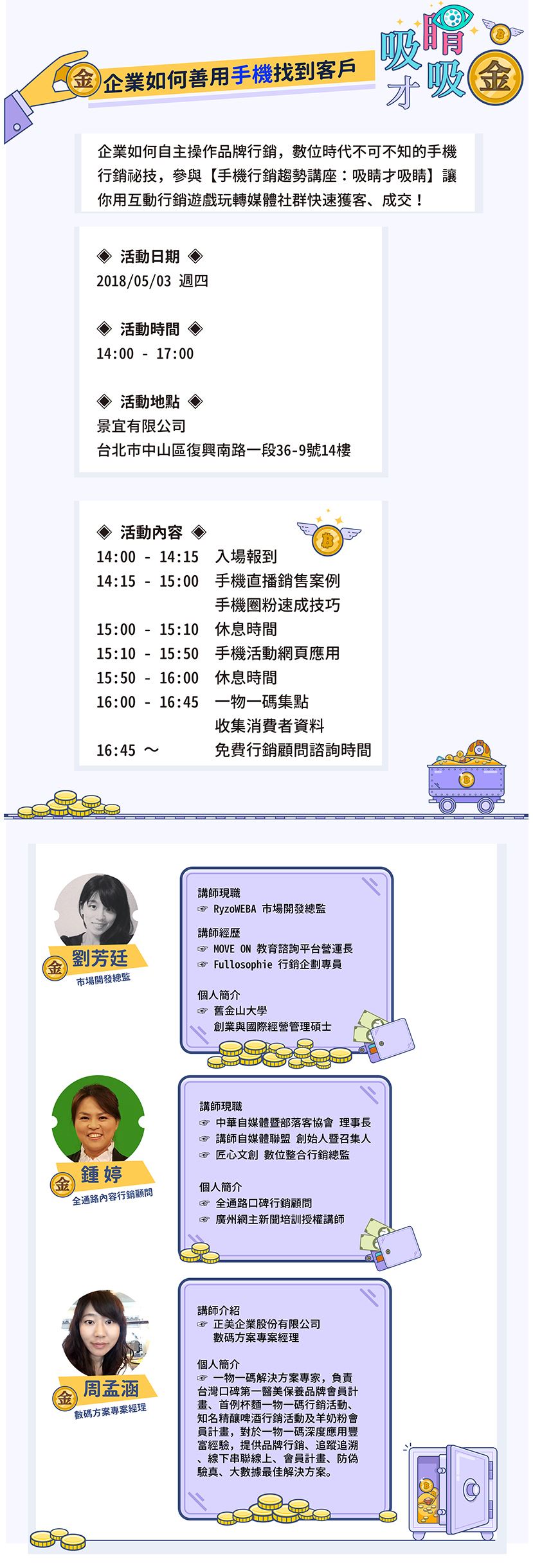☎️ 主辦單位聯繫窗口 RyzoWEBA活動小組-Brenda 聯繫電話:02-87725011 #17
