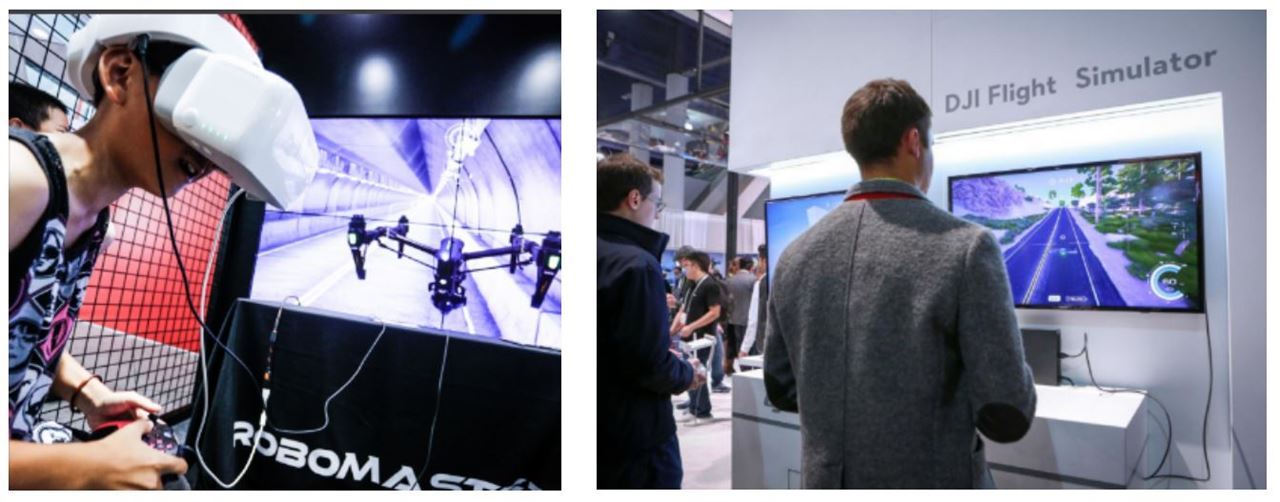 飛競模擬體驗區經由影片欣賞,及教練現場指導後,使用DJI大疆創新無人機公司所研發,全球尚未公開但在台灣春電展搶先亮相的"飛行模擬軟體DJI Flight Simulator",以有趣刺激的穿越競賽遊戲的方式,配戴DJI Goggle眼鏡,手拿飛行遙控器,體驗FPV第一視角的飛行,就彷彿身歷其境般,沉浸在飛行的快感中。讓從來沒有學過的初學者,感受到無人機飛行的最大樂趣,並能夠在最短的時間中學會操作無人機,想學飛行的你,可千萬別錯過了!!