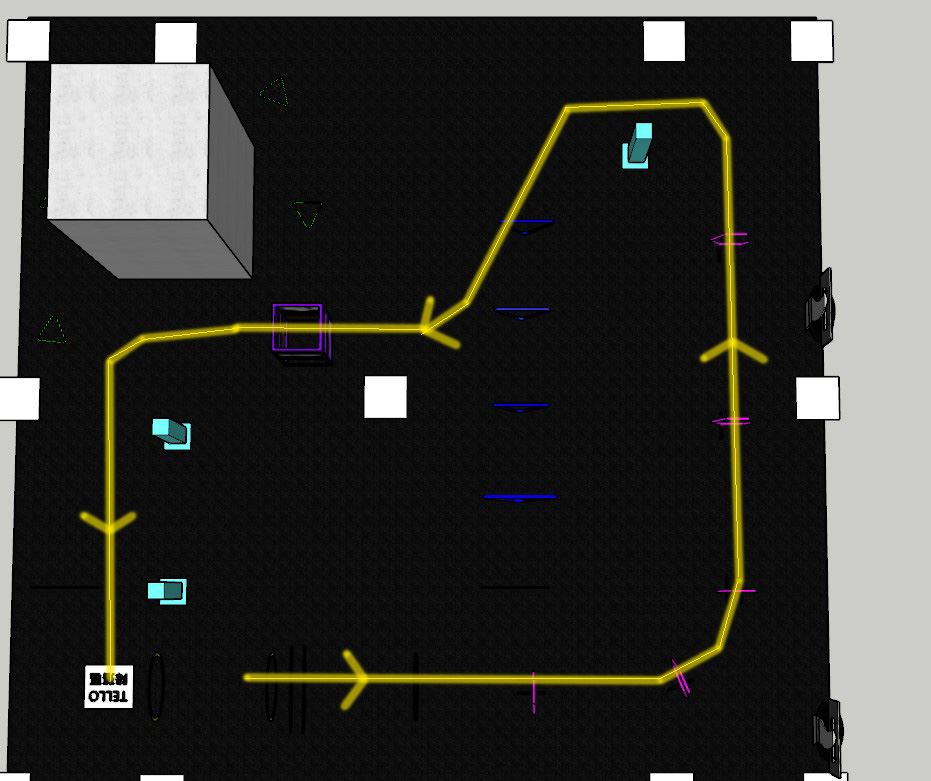 TELLO民眾體驗賽將於室內進行,四週將圍上安全網保護,本圖片為關卡場地及賽道路線示意圖