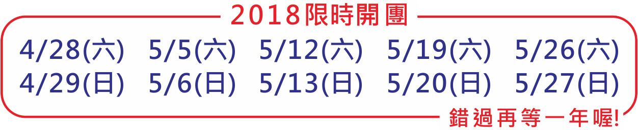 開團日期 → 4/28(六)、5/5(六)、5/12(六)、5/19(六)、5/26(六)