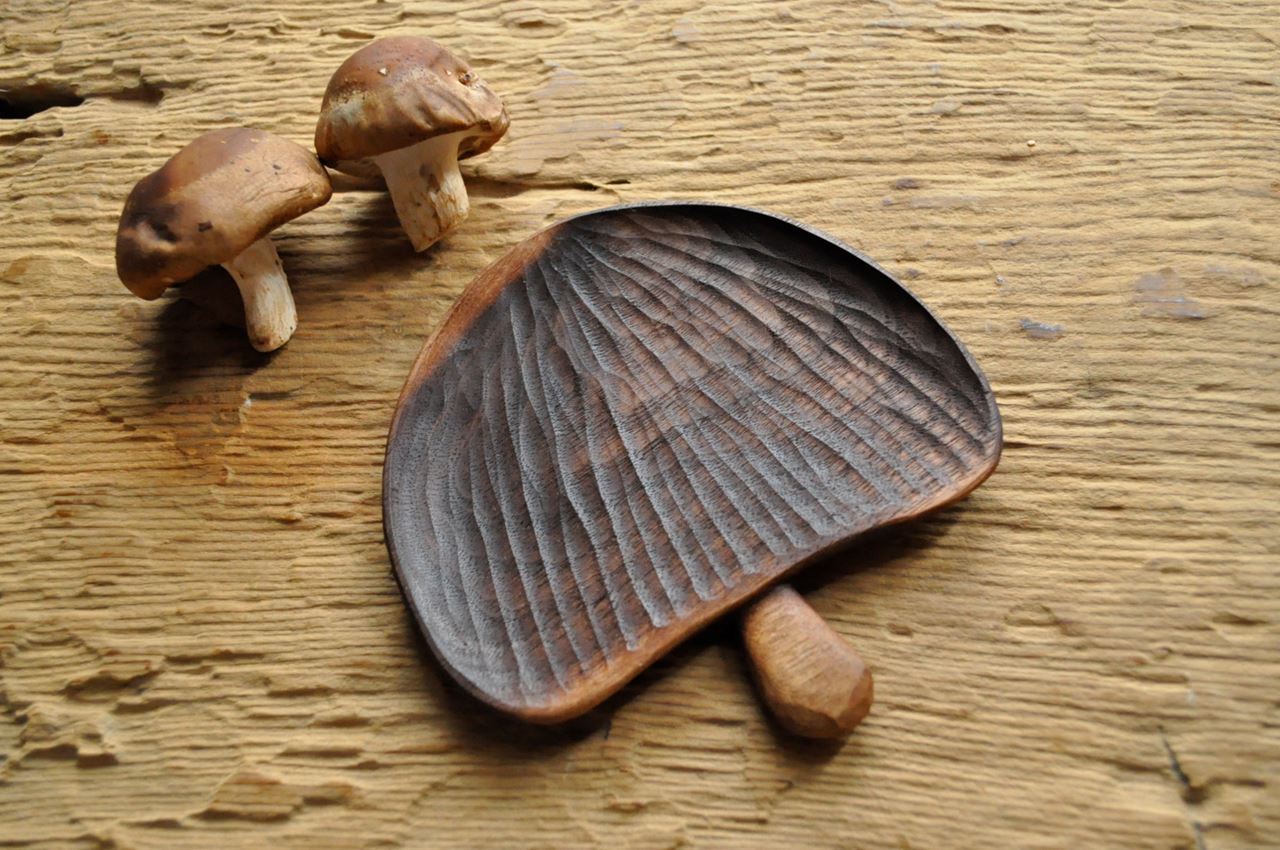 順向栗子/磨菇尖點的手雕紋理一如栗子獨特的細部特徵,沿著栗子盤沿弧型,由寬漸縮細的線條,呈現更傳神的立體感。