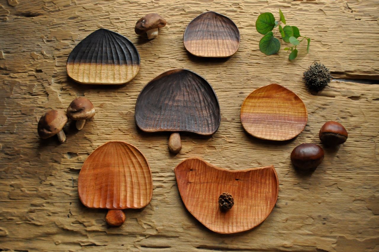 除了磨菇,栗子,櫻桃木雕刻的鳥兒等多種示範主題