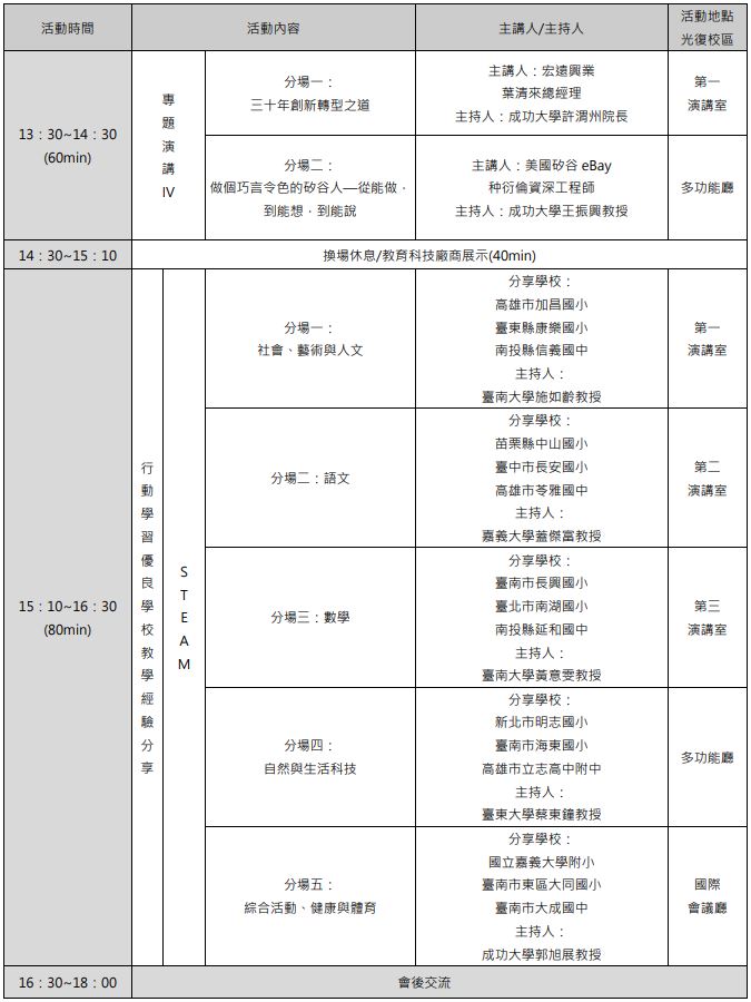 *每人請選擇專題演講IV及行動學習優良學校教學經驗分享各一場次,請勿複選